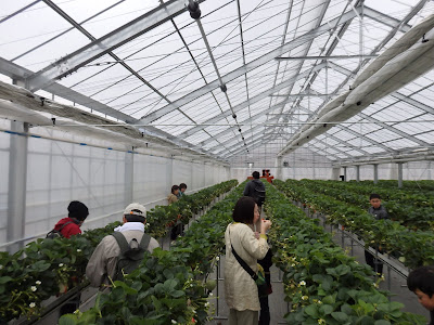 約2時間で5.7kmを歩き切り、無事馥郁農園に戻ってきました。クールダウン後は、いよいよお待ちかねのイチゴ狩りスタートです。